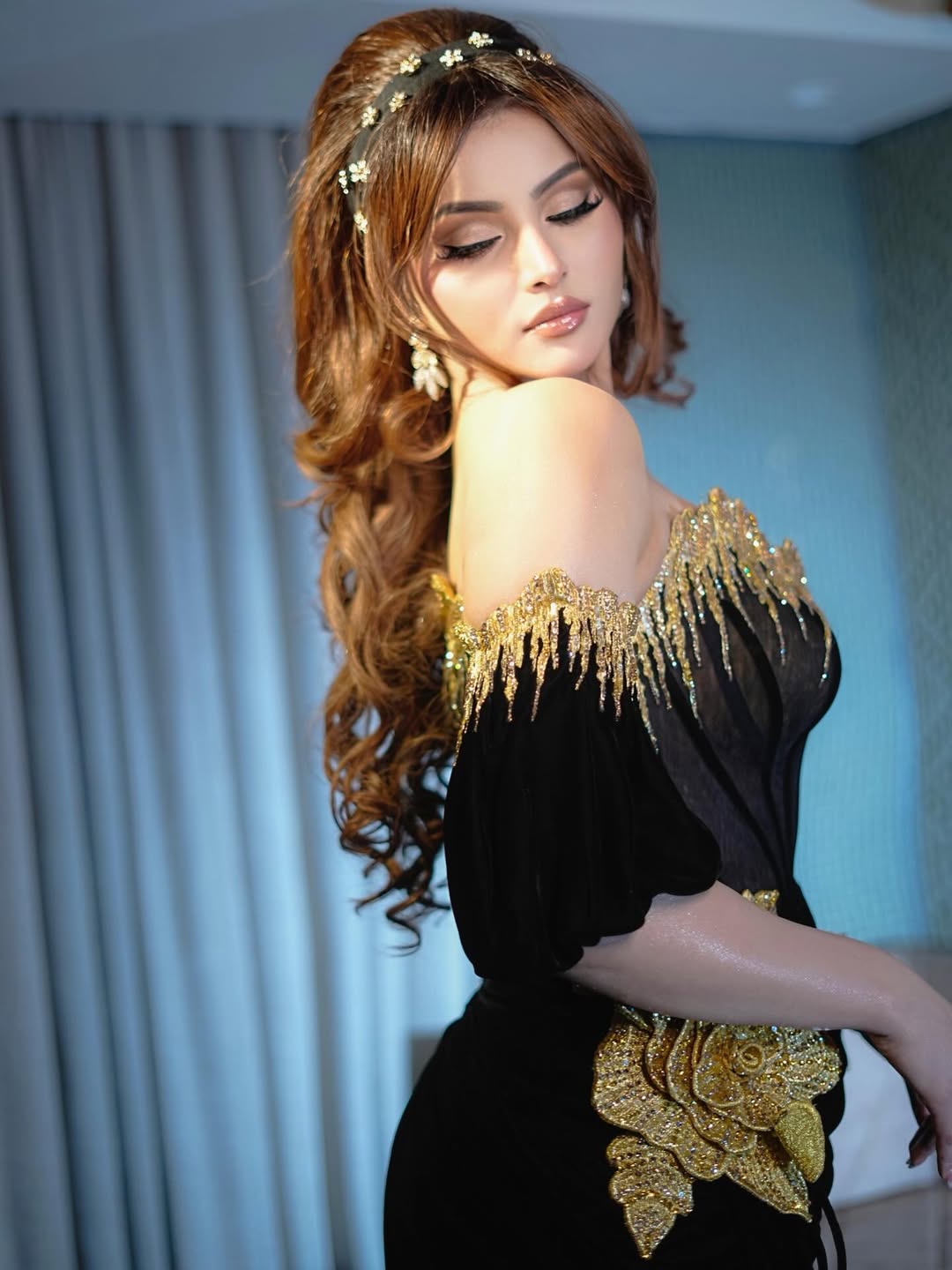 ઉર્વશી રૌતેલા ઓફ-શોલ્ડર ડ્રેસમાં અત્યંત સુંદર પોઝ આપતી જોવા મળી રહી છે